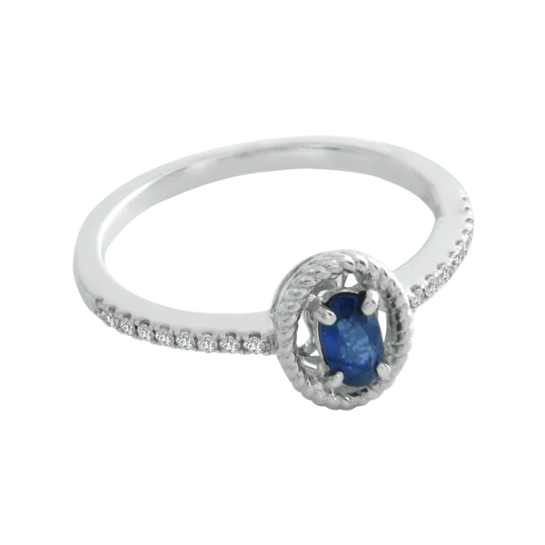 Looking for something simple? If your color is blue, and your budget is in the red, this 14k white gold ring has a sapphire weighing nearly .25 carats and .1 carats in diamonds. As tiny as this treasure is, the 20 diamonds keep it sparkling at all angles. Compare at $1,999.00