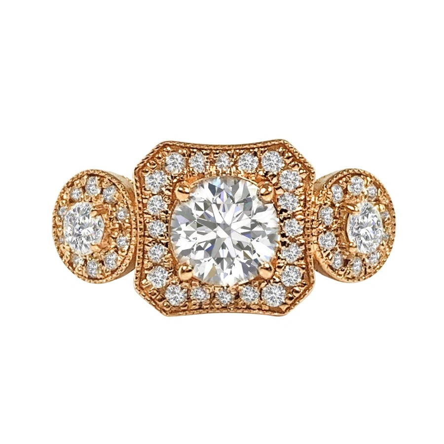Big and beautiful, this Taj Mahal engagement ring shows stunning detail and structure. With a one carat center stone that is H in color and SI in clarity, this ring dazzles beyond compare. Not only is the center stone one carat, the eighty-eight diamonds that surround this piece total one carat as well! Two carats total diamond weight. Set in 18k rose gold. Compare at 44,999.00 Please call us if you need any alterations made to this piece.