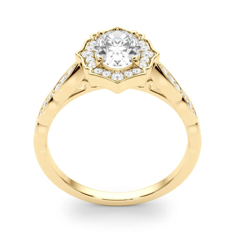 With intricate milgrain detail, this ring has precision like no other. With a center stone of a full carat, this ring is made to excite. Surrounding this wonderous stone are thirty-eight H in color and SI in clarity diamonds that weigh a total of .25 carats. Set in 18k yellow gold. Please call us if you need any alterations made to this piece. Available in semi mount. Call for price.