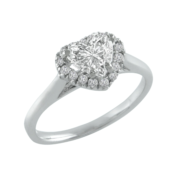 This ring could either represent love for another person, or love for yourself. With a gorgeous heart shaped diamond ring, there is a halo of light surrounding such beauty. The center stone is H in color and SI in clarity totaling .81 carats. The diamond halo totals 16 diamonds that are .2 carats in weight. This ring will make anyone feel golden. All set in 14k white gold. Compare at $9,999.00 Please call us if you need alterations not offered here.