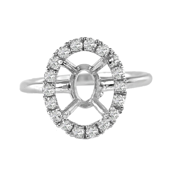 The best part about semi-mounts are that it is almost a “build your own jewelry” piece. Have a stone that your grandma gave you? You could put it in a ring, necklace, bracelet– whatever your heart desires! There are forty-four diamonds that are H in color and SI in clarity. The carat weight is .5. The dimensions are 10 X 9 millimeters. Compare at $4,499.00 Please call us if you need an alteration not offered here.