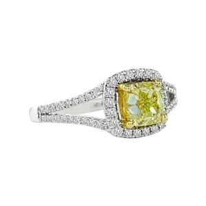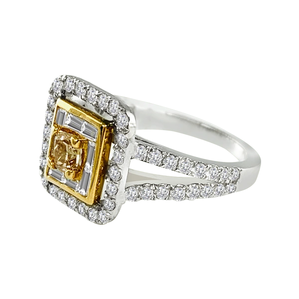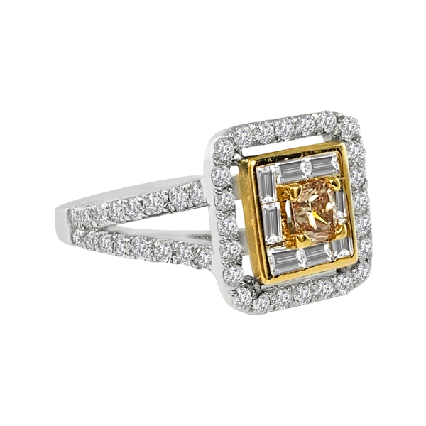 It`s the color that gives her grace, the color that warms her face. The rarity of a pink diamond makes this ring special. The pink diamond is .39 carats in weight, and it is princess cut. Surrounding this stone are seventy diamonds that are G in color and SI in clarity. A GIA Certified ring that is a true wow factor. Set in 18k white gold. Compare at $21,999.00 Please call us if you need alterations not offered here.